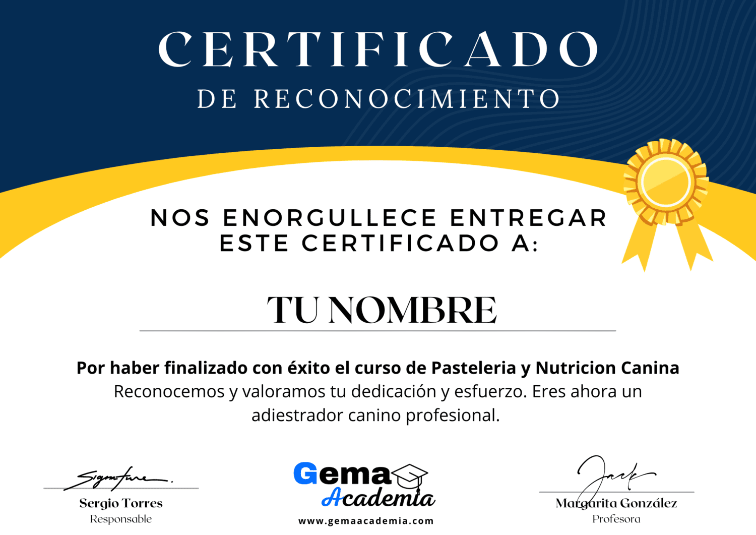 Si! Recibirás un certificado con tu nombre el cual te acredita como experta en Pasteleria y Nutrición Canina
